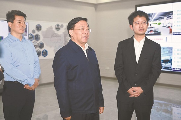 5月30日,省委書記韓俊在蕪湖市酷哇科技有限公司了解自動駕駛商用車的科技研發、市場銷售等情況。本報記者 楊 竹 攝