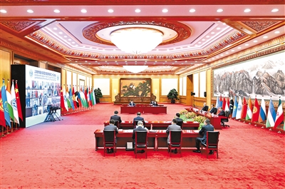 7月4日下午,國家主席習近平在北京以視頻方式出席上海合作組織成員國元首理事會第二十三次會議并發表題為《牢記初心使命 堅持團結協作 實現更大發展》的重要講話。