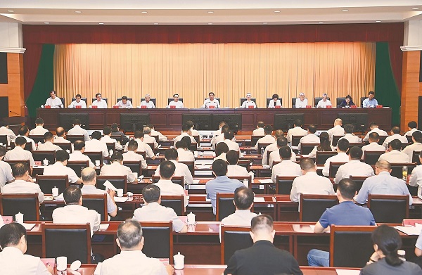 8月20日上午,在習近平總書記在合肥主持召開扎實推進長三角一體化發展座談會三周年之際,省委、省政府召開全省大會,對縱深推進長三角一體化發展進行再動員再部署。省委書記韓俊出席會議并講話。本報記者 楊 竹 攝