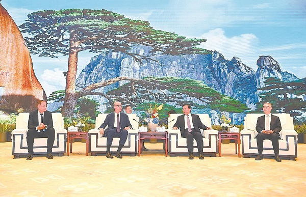 10月10日晚,省委書記韓俊、省長王清憲在合肥與大眾汽車集團監事會主席潘師、管理董事會主席奧博穆一行舉行工作會談。