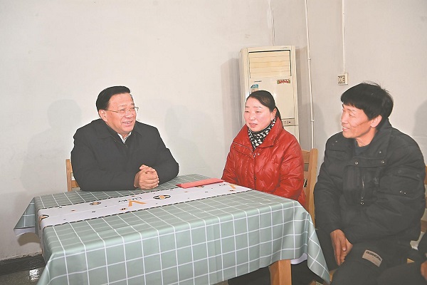 1月29日下午,省委書記韓俊在滁州市定遠縣西卅店鎮高潮村,慰問困難黨員李躍珍。本報記者 楊 竹 攝