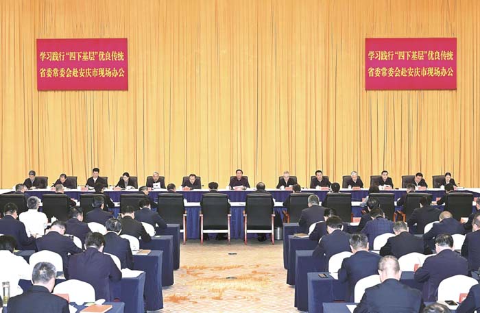 四月十七日下午,省委常委會學習踐行“四下基層”優良傳統,赴安慶市現場辦公。省委書記韓俊主持會議并講話。本報記者 楊 竹 攝