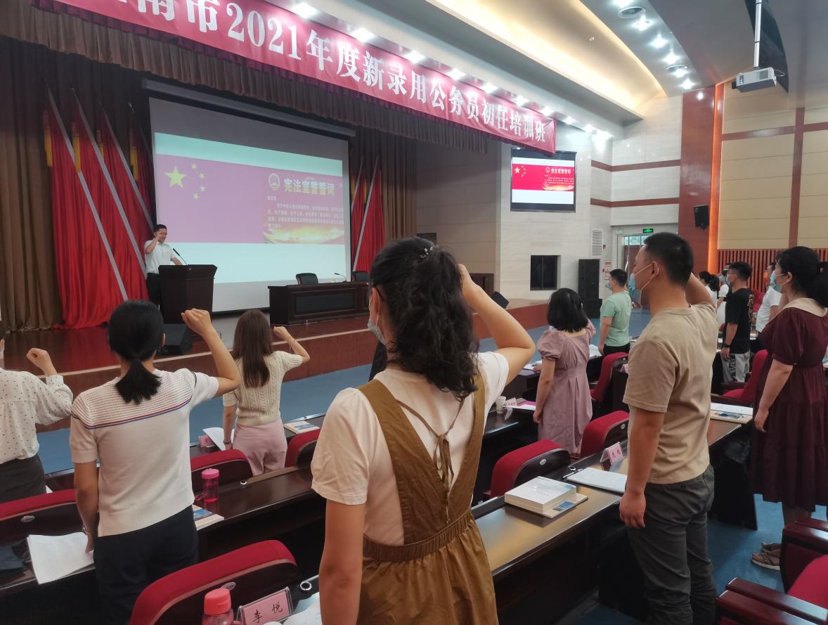 開班式上,新錄用的公務(wù)員進(jìn)行了莊嚴(yán)的憲法宣誓。