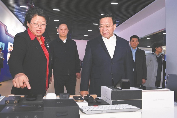 11月23日,省委書記韓俊在蚌埠國顯科技公司了解企業發展歷程、產品技術路線和市場應用情況。本報記者 楊 竹 攝