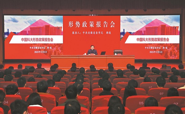 12月5日,省委書記韓俊在中國科學技術大學作形勢政策報告。本報記者 楊 竹 攝