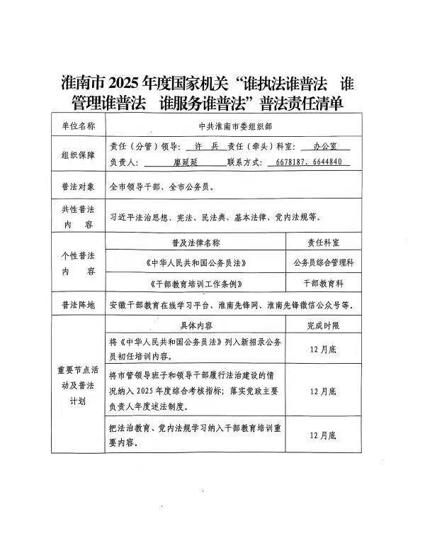 淮南市2025年度國(guó)家機(jī)關(guān)“誰(shuí)執(zhí)法誰(shuí)普法 誰(shuí)管理誰(shuí)普法 誰(shuí)服務(wù)誰(shuí)普法”普法責(zé)任清單