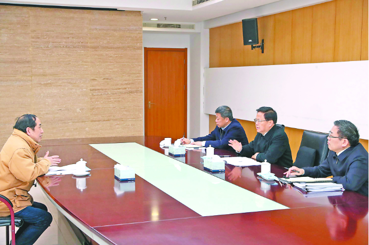 2月10日上午,省委書記鄭柵潔在合肥市高新區管委會帶頭開展現場辦公,面對面接待來訪企業,聽取意見、了解訴求,幫助企業解決實際困難和問題。 本報記者 徐國康 楊竹 攝