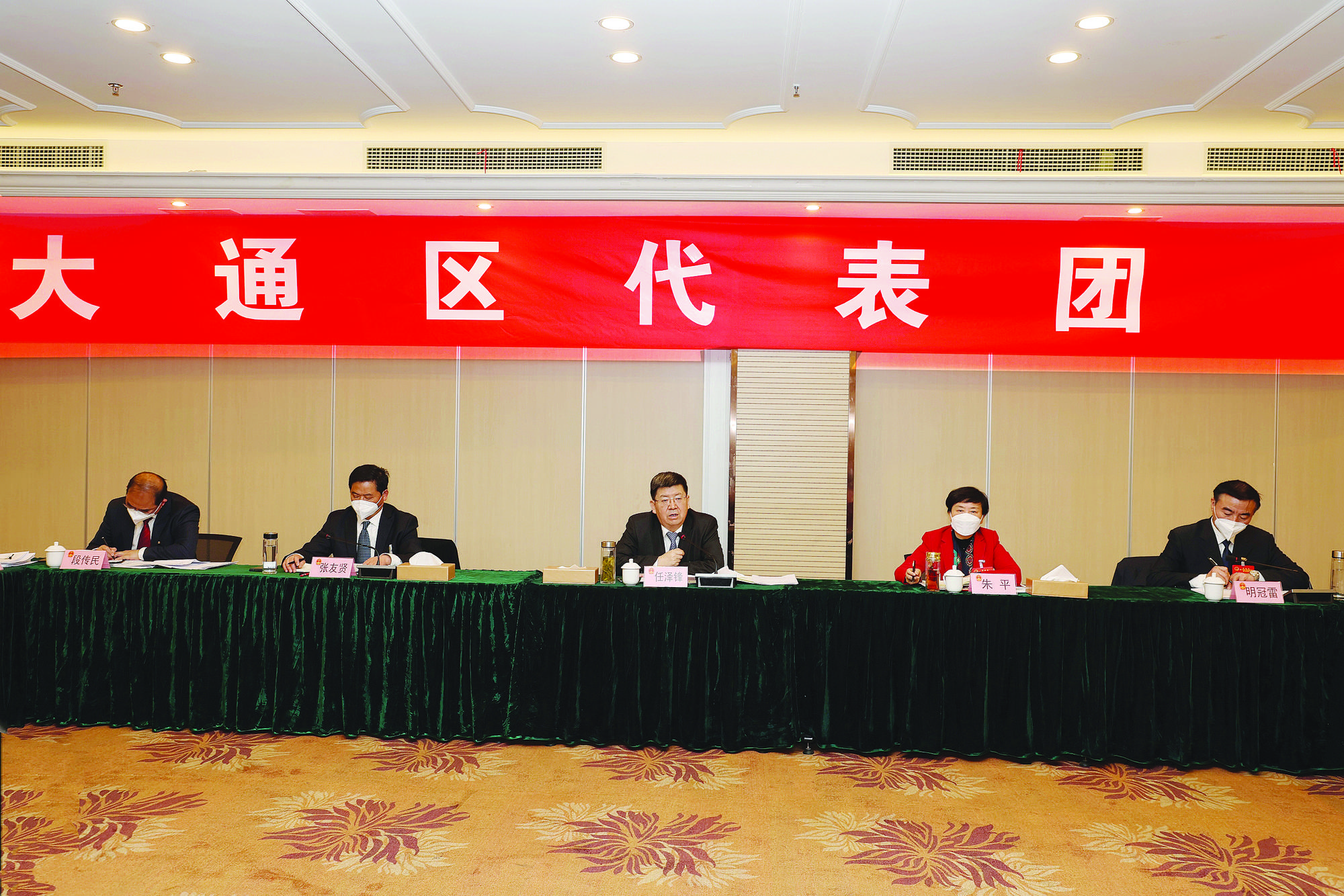 (圖:12月28日,市委書記任澤鋒參加大通區(qū)代表團(tuán)審議。 本報記者 張 越 攝)