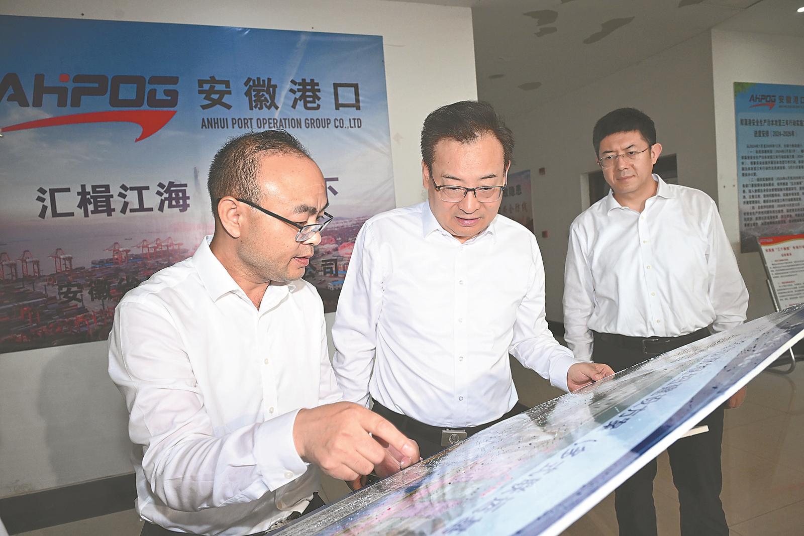 八月十一日,省委書記梁言順深入馬鞍山市鄭蒲港港區(qū),詳細(xì)了解港口規(guī)劃建設(shè)運(yùn)營(yíng)情況。記者 楊竹 許昊 攝