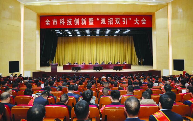 2月25日上午,全市科技創(chuàng)新暨“雙招雙引”大會(huì)在市政務(wù)中心召開。 (記者 張?jiān)?攝)